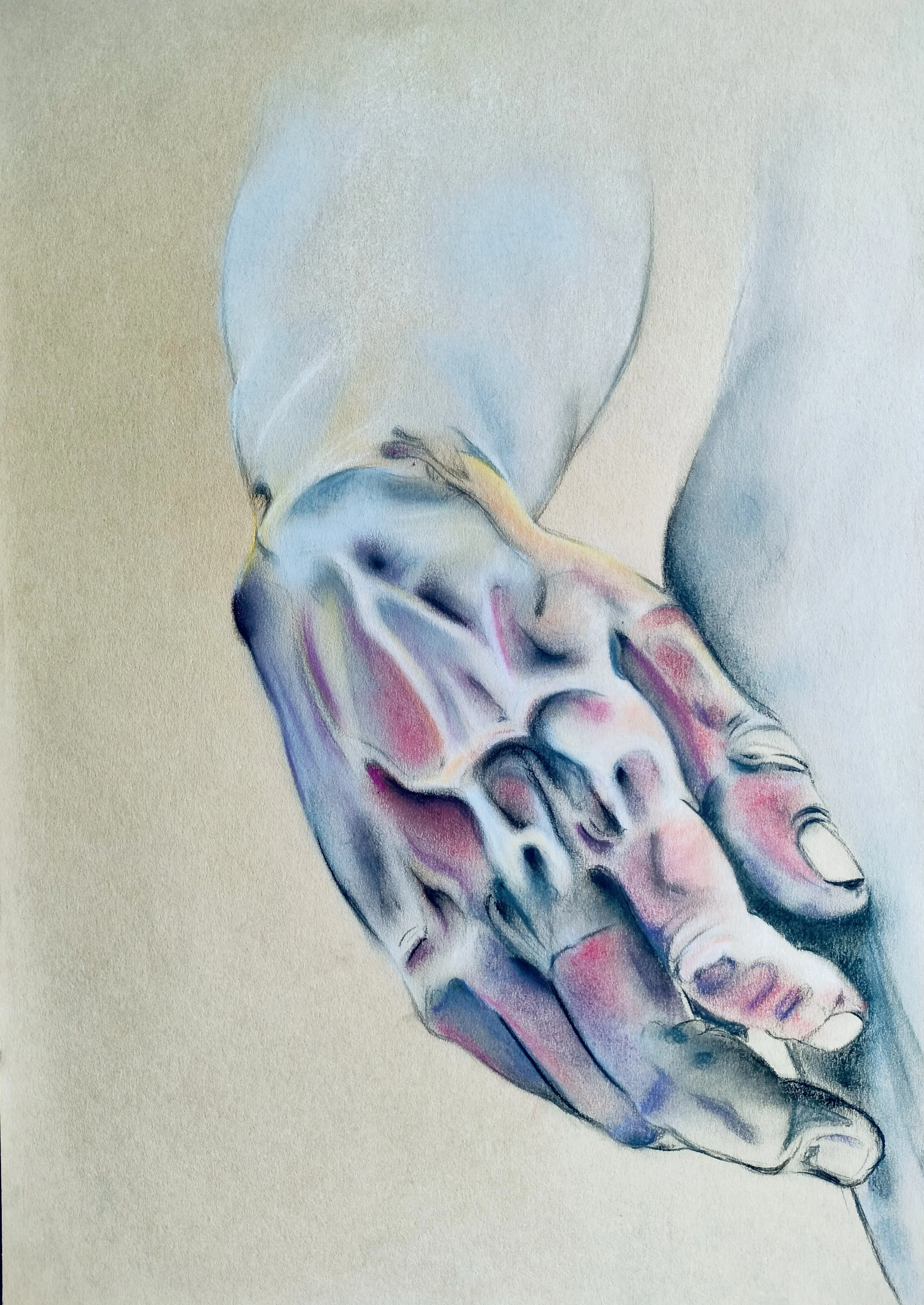 Michelangelo's David, the first colossal marble statue made in the early modern period, is one of the most recognized works of Renaissance sculpture; a symbol of Florentine civic pride and liberty, and a representation of the ideal human form and spirit. The pose fashioned by Michelangelo is unlike that of earlier Renaissance expressions of David. The omission of the giant, Goliath, altogether had never been depicted before. According to scholars, David is depicted before his battle with the giant. Rather than being shown victorious over a foe much larger than he, David looks wary as he sizes up the giant Goliath before the battle has actually taken place. His brow is drawn, his neck tense, and the veins bulge out of his lowered right hand. His left hand holds a sling that is draped over his shoulder and down to his right hand, which holds the handle of the sling. The sculpture has come to embody not just the "glorified warrior" but also the "honorable, worthy, distinguished yet also real, vulnerable and contemplative" individual - a complex portrait of a whole person, which is more enduring than a simple narrative.