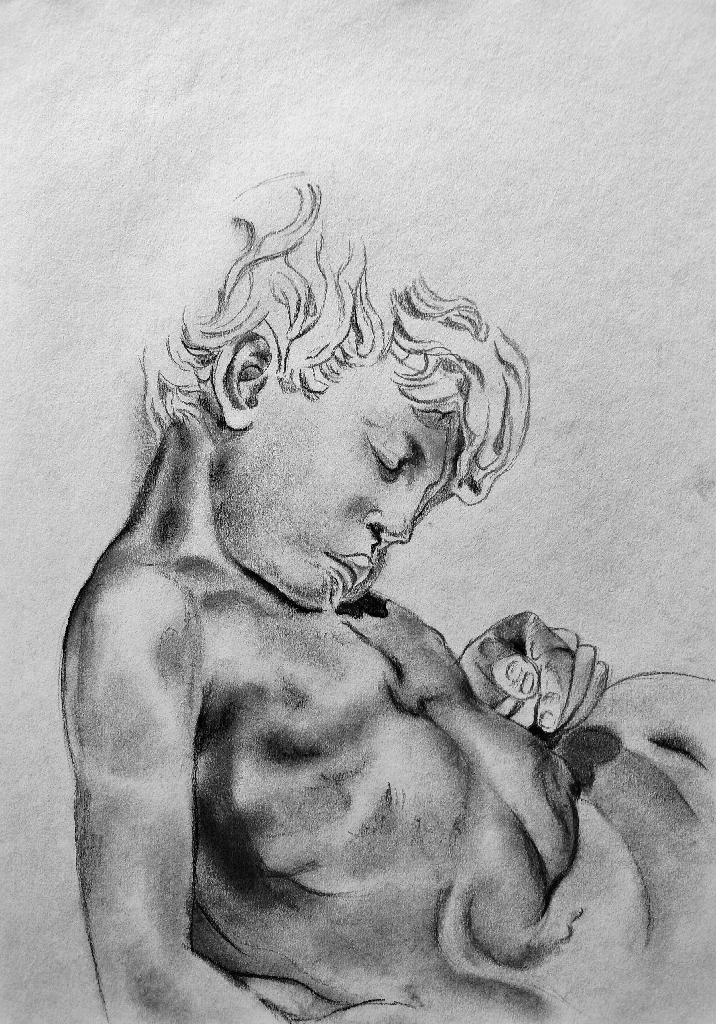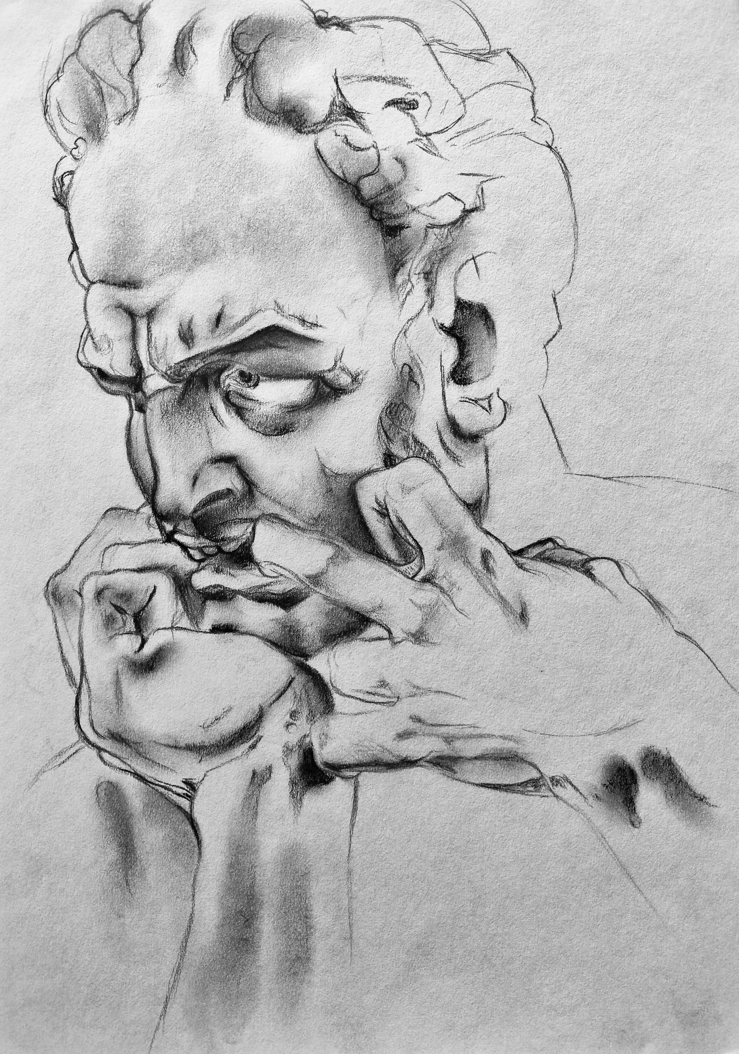 In mid-nineteenth-century, Jean-Baptiste Carpeaux broke away from traditional approaches, shifting to a freer and more naturalistic style. Biographically, his life encompassed a volatile mix of raw talent and rawer ambition, incessant work, grasping parents, a tormented marriage, economic struggle, debilitating illness and some Othello-like paranoia. And his sculptures expressed a previously unseen freedom and immediacy. The subject of this intensely Romantic work, Ugolino and his sons, is derived from Dante's Inferno, which describes how the Count Ugolino, his sons, and his grandsons were imprisoned in 1288 and died of starvation. Ugolino is shown looking into the distance as he grieves the agonizing death of his grandchildren and son, and his other son clings to his body.
