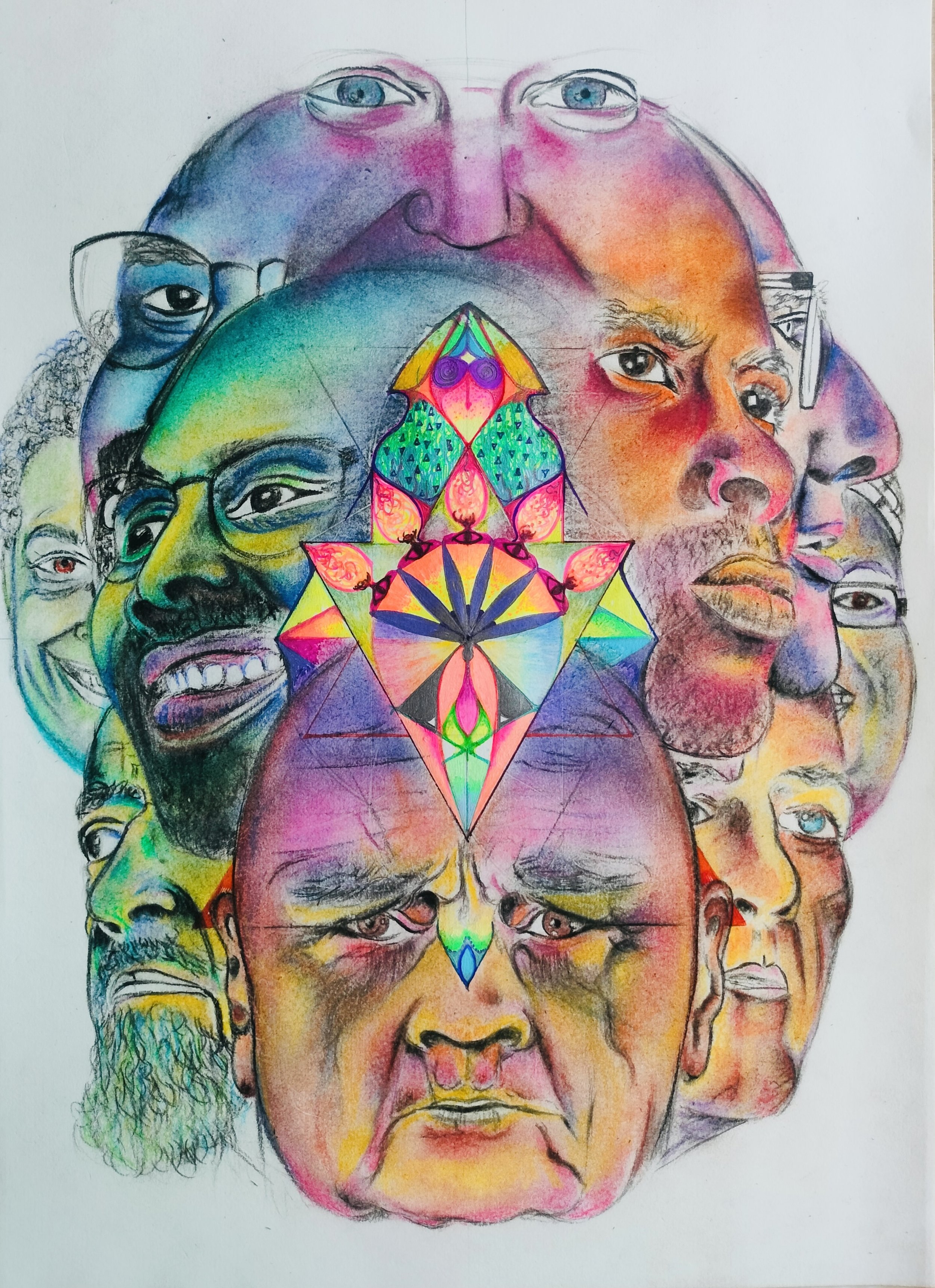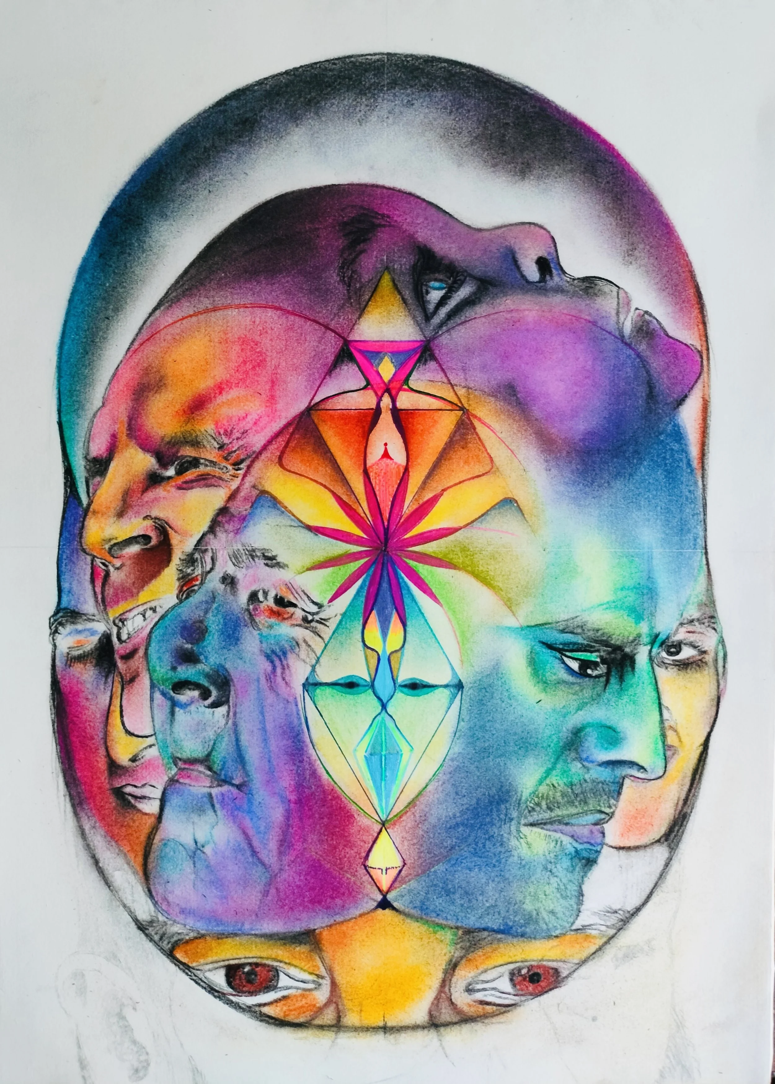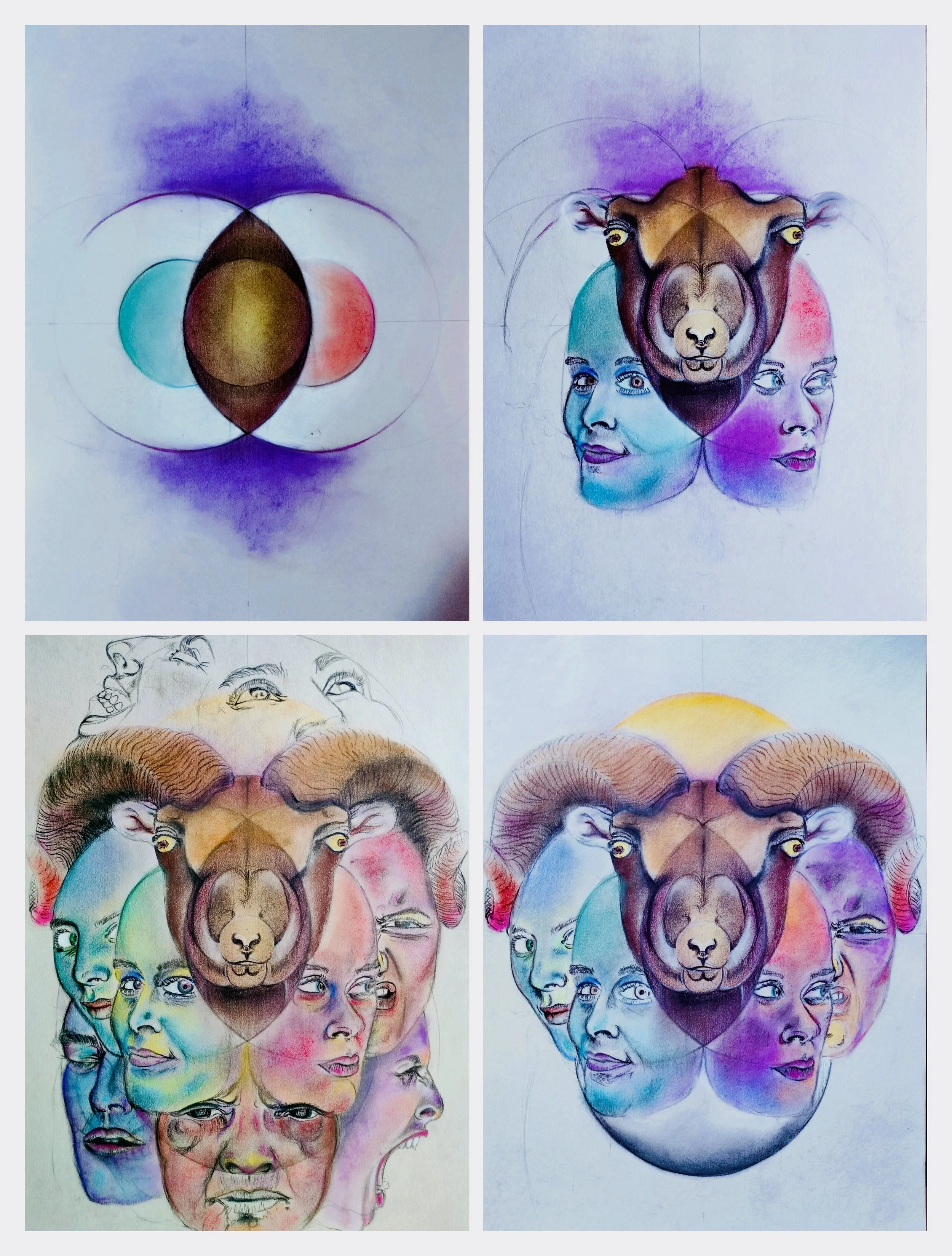Inspired by visits to the Buddhist caves in India during a time of intense turbulence, this series honors the often eleven (not ten) headed expression of Avalokitesvara, symbolizing his infinite compassion and ability to perceive suffering across all directions.